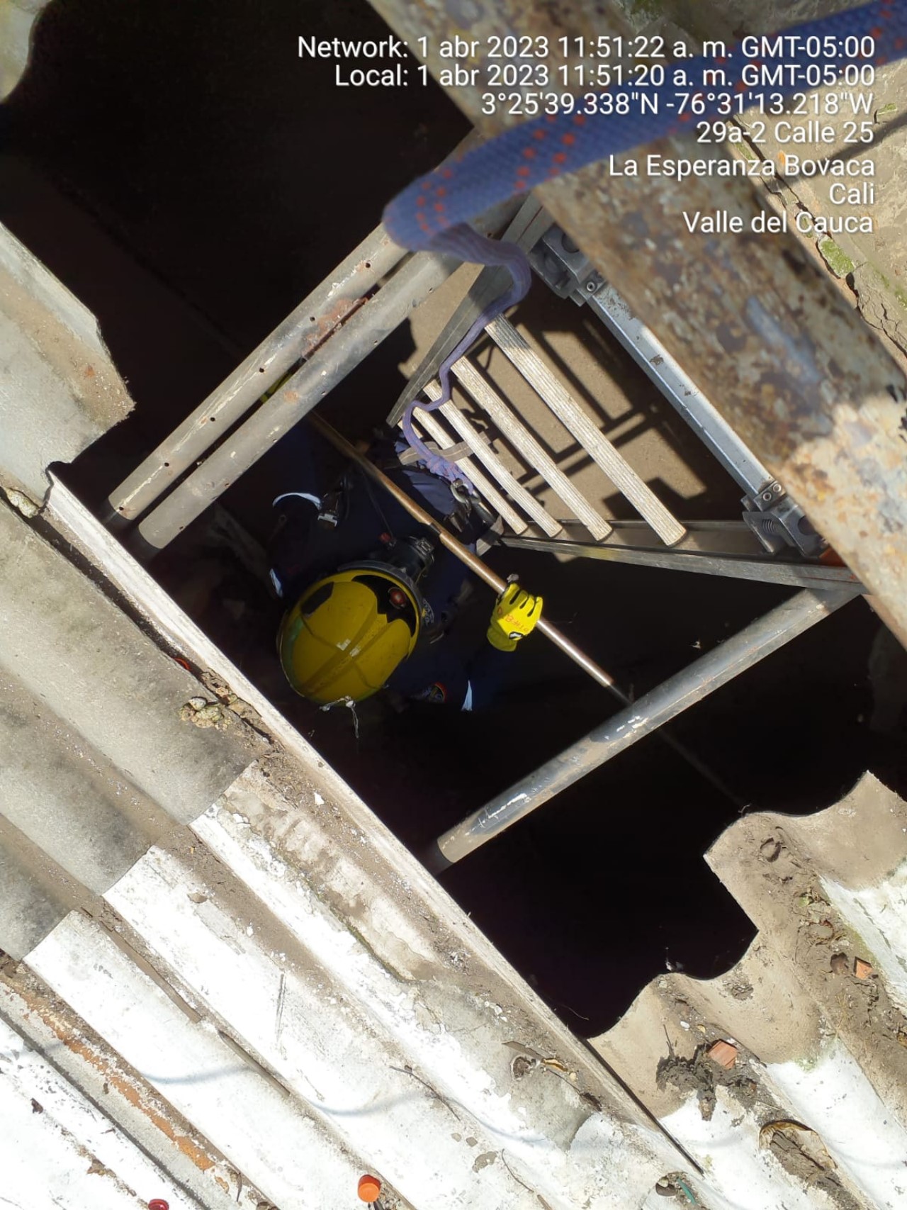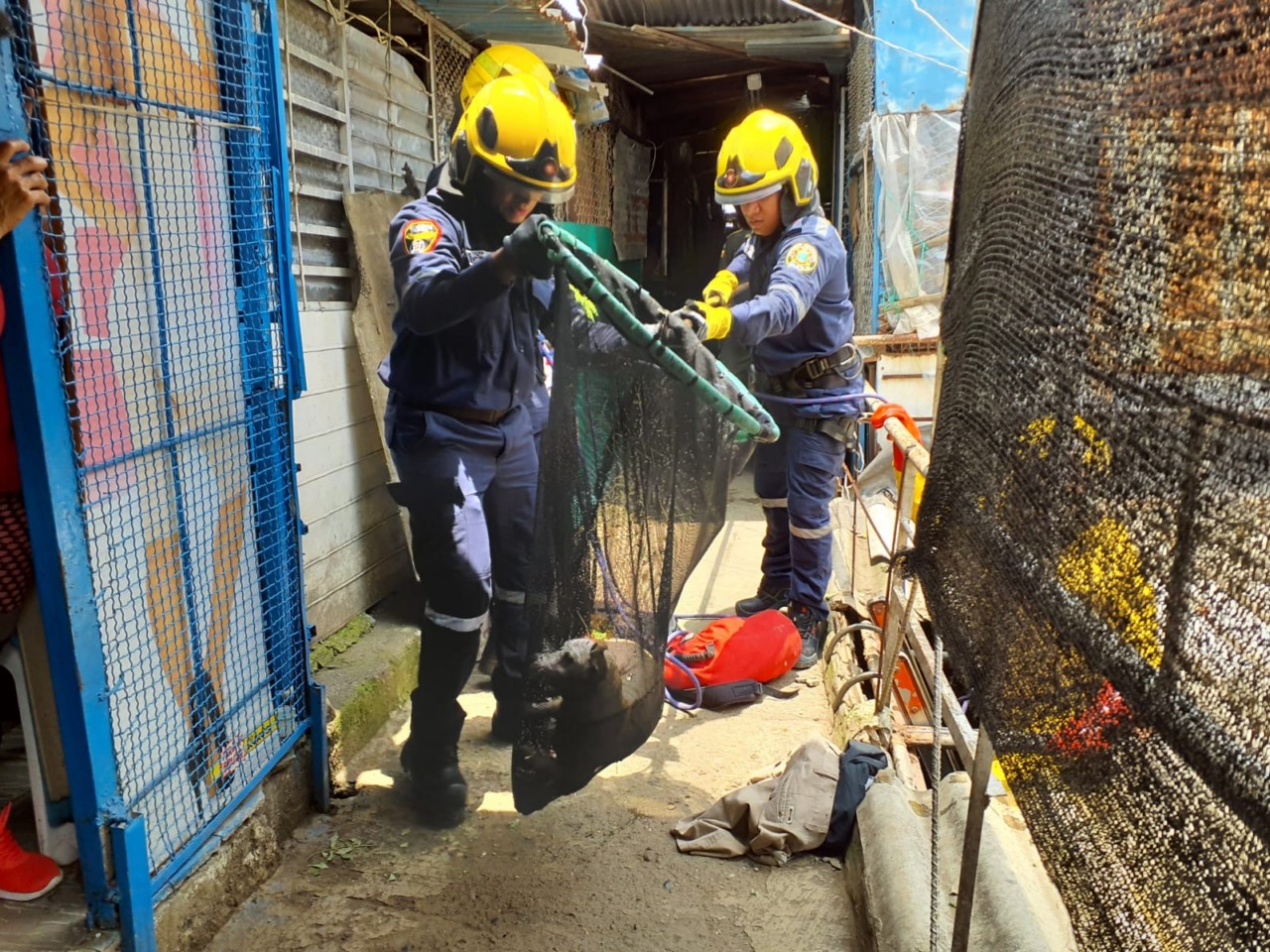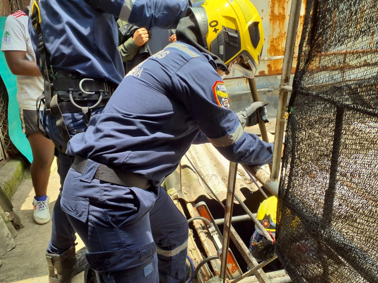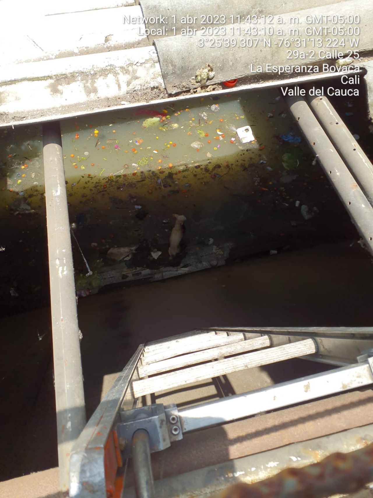 Los bomberos encontraron a un canino al interior de aguas residuales, el cual fue rescatado y salió ileso en conjunto con policía nacional; fue trasladado a la estación de policía La Floresta.