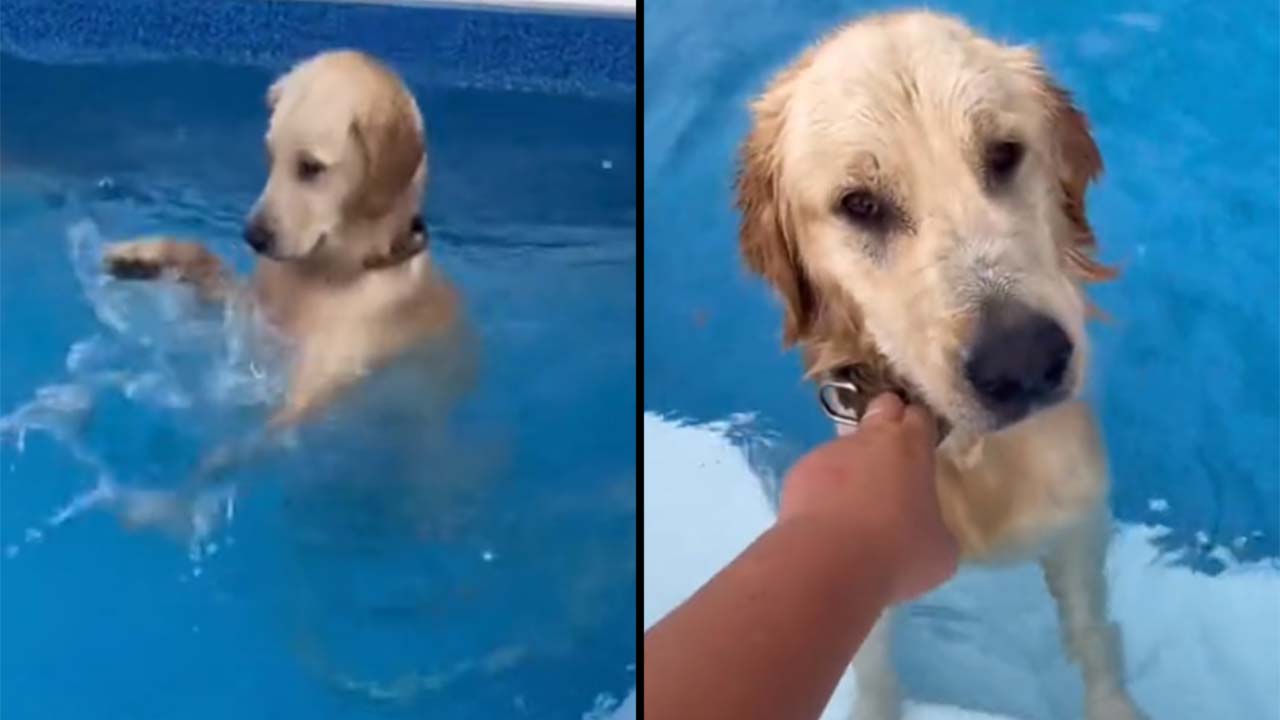 Un Golden Retriever causó ternura en redes sociales, luego ser captado por su dueña, entrando sin permiso a la piscina de sus vecinos en New Jersey, Estados Unidos.