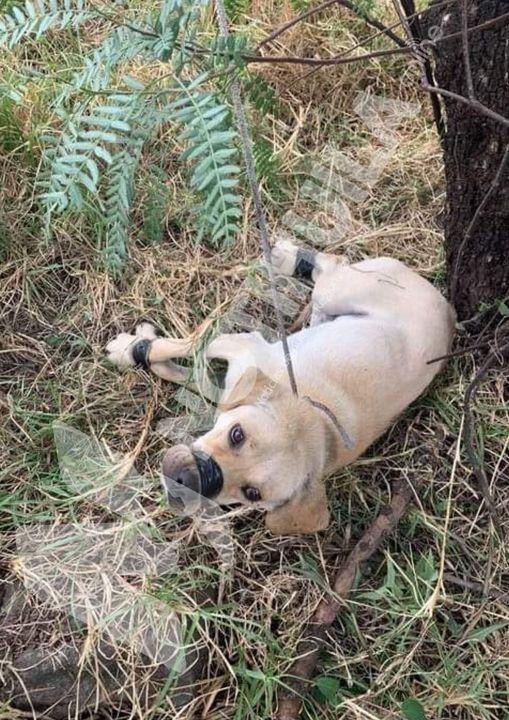 ¡Repudiable! Abandonaron a un perrito con el hocico y las patas amarradas
