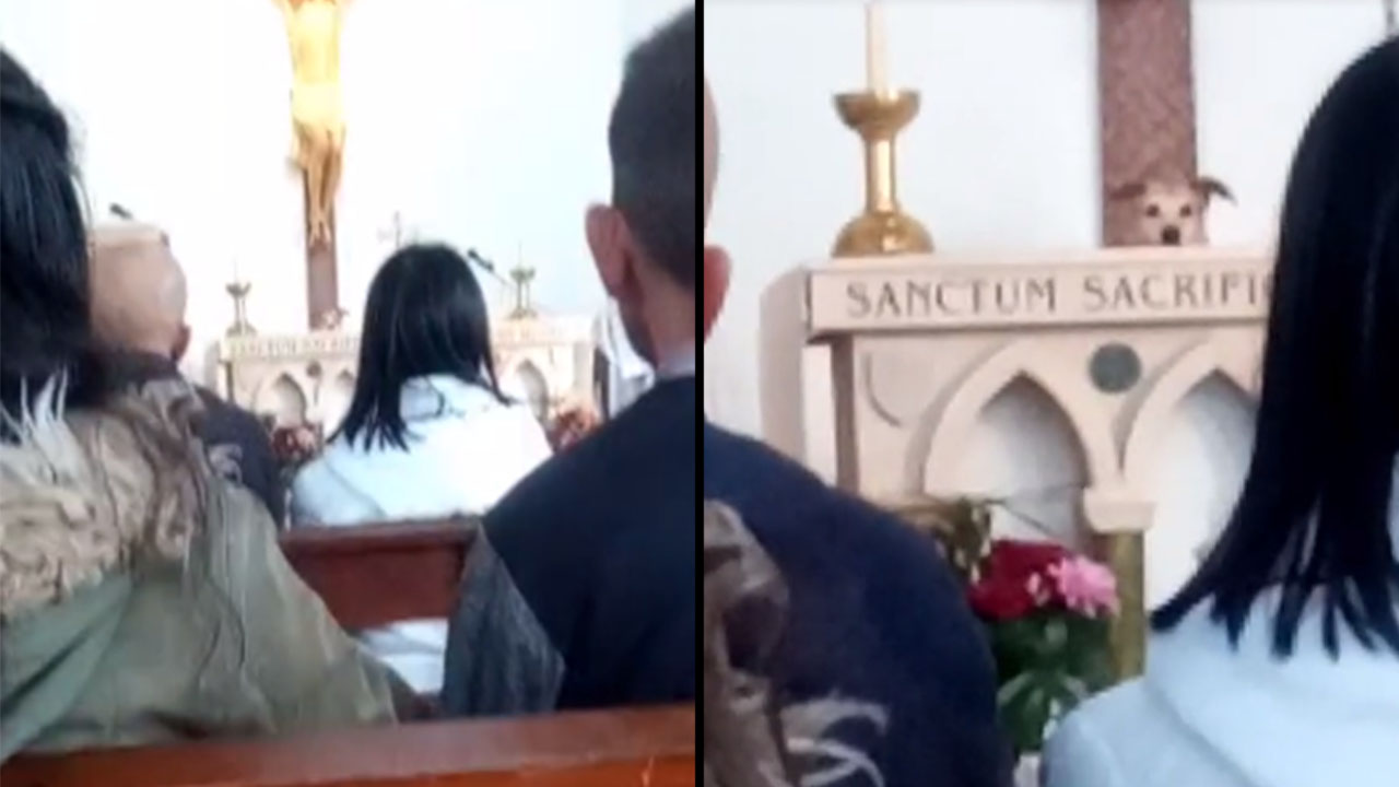 En el video se ve como el ‘Perro cura’ se colocó en el puesto del párroco, justo antes de que empezará la misa.
