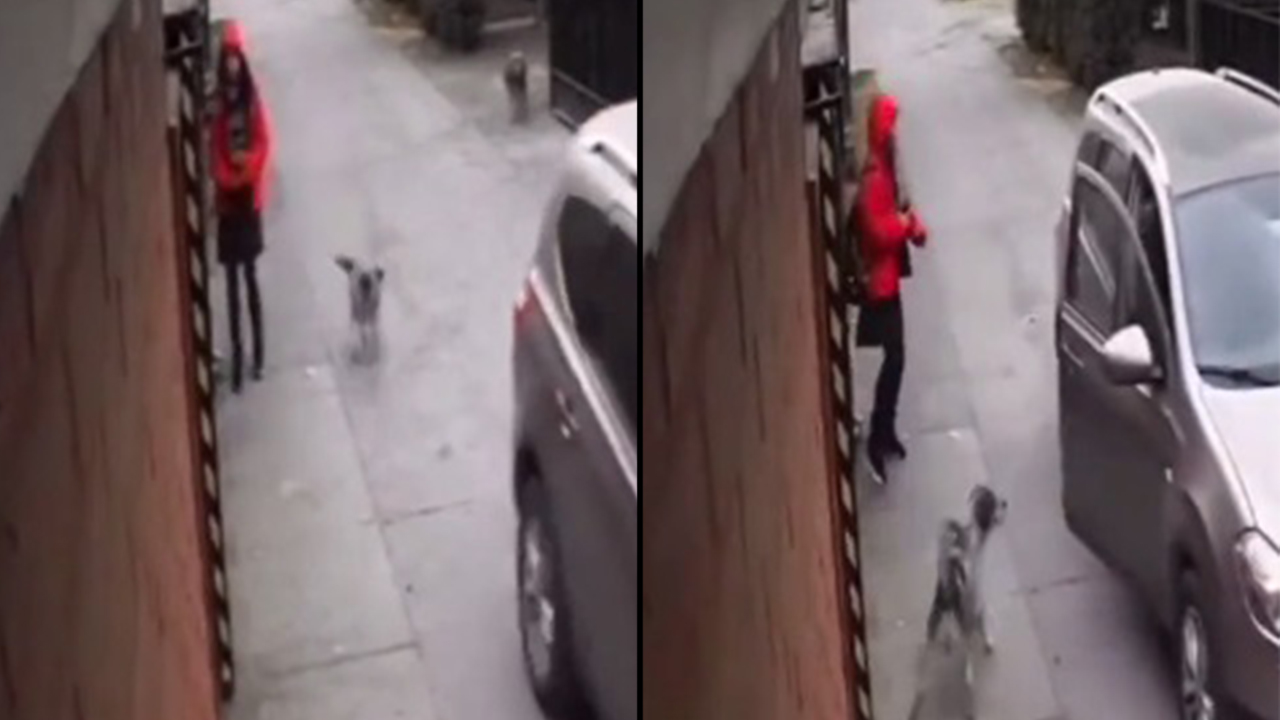 El video muestra el momento en que una niña va caminando por un callejón cuando se acerca un carro a ella. El copiloto abre la puerta, provocando que la asustada niña comience a caminar hacia atrás y justo llegó el perrito ladrando y ahuyentando al conductor del carro.