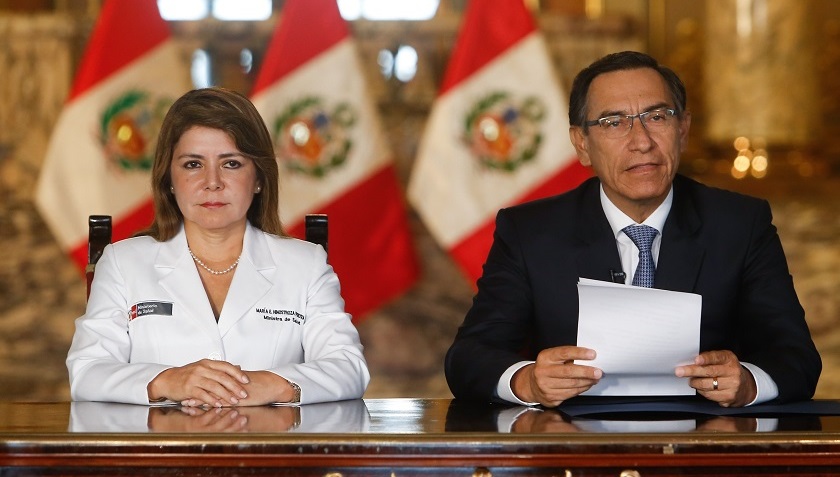 El mandatario Martín Vizcarra (d), junto a la ministra peruana de Salud, Elizabeth Hinostroza (i), en el Palacio de Gobierno de Lima,