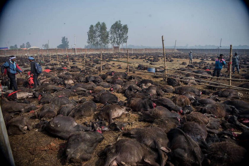 Pese a las críticas en todo el mundo por parte de defensores de los derechos de los animales, el martes 3 de diciembre comenzó en Nepal el festival hindú de Gadhimai Mela, considerado el ‘más sangriento del mundo’, en el cual se sacrificarán alrededor de 6.500 búfalos, además de cabras, cerdos, pollos y patos.