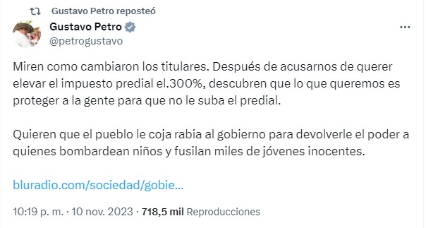— Gustavo Petro (@petrogustavo) November 11, 2023
