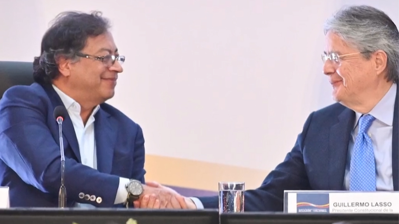 El presidente Gustavo Petro y el presidente Guillermo Lasso suscribieron una declaración donde ratifican el compromiso conjunto de ambos países para abordar soluciones en cuanto a la paz y seguridad internacionales; la conservación ambiental, el desarrollo sostenible, la seguridad alimentaria y la apertura económica y comercial.