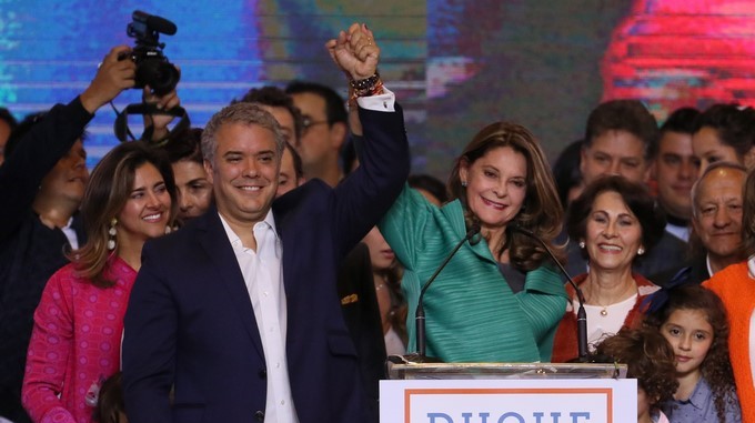 Según datos oficiales con el 100 % de los votos contabilizados, Duque, del partido Centro Democrático, fue elegido presidente con 10.373.80 votos, que equivalen al 53,98 %, mientras que Petro recibió 8.034.189 papeletas (41,81 %).