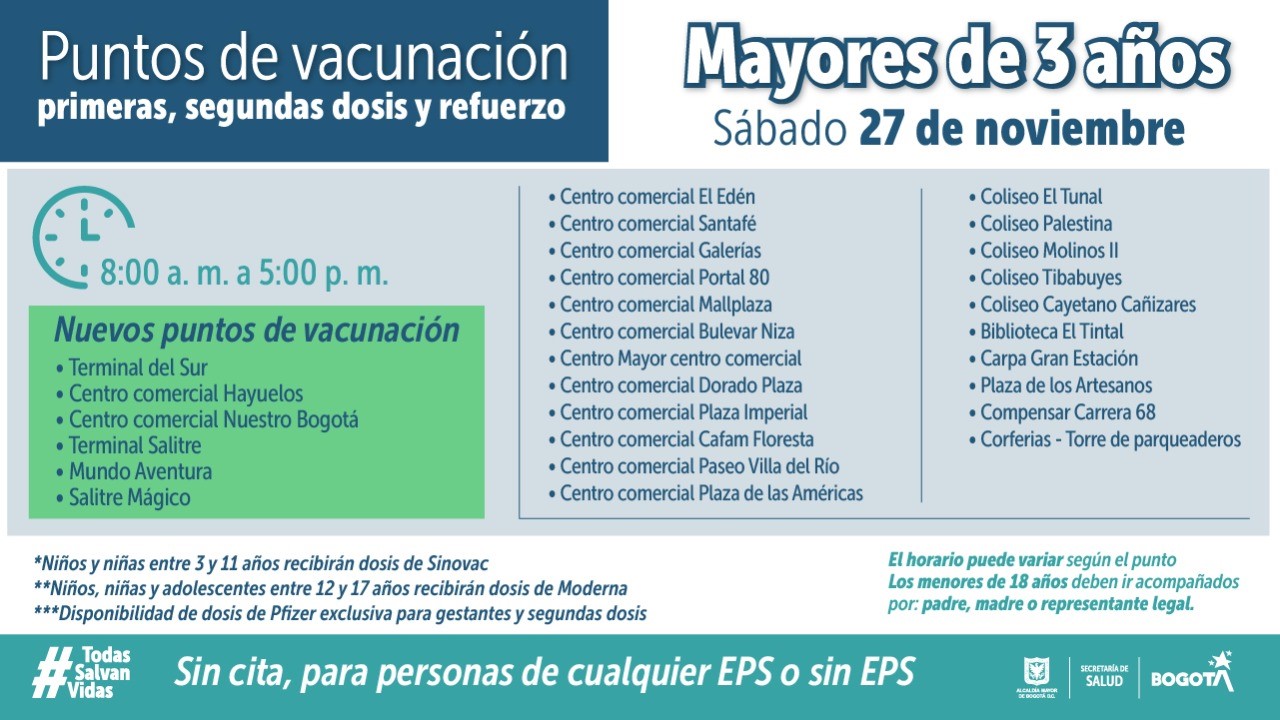 Las dosis estarán disponibles en todos los puntos de la ciudad desde el sábado 27 de noviembre a partir de las 8 a.m., específicamente para continuar vacunando a mujeres en embarazo desde la semana 12 de gestación hasta el día 40 postparto, y para la aplicación de segundas dosis de aquellas personas que están pendientes de completar su esquema.