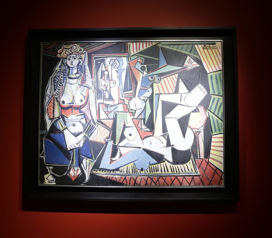 La obra, realizada por el pintor español en 1955 y con unas dimensiones de 114 por 156,4 centímetros, es la culminación de una serie de 15 cuadros con los que revisó en clave cubista el cuadro del mismo título del artista francés Eugène Delacroix, que le llegó a obsesionar y en el que creía ver a la última de sus mujeres, Jacqueline Roque.