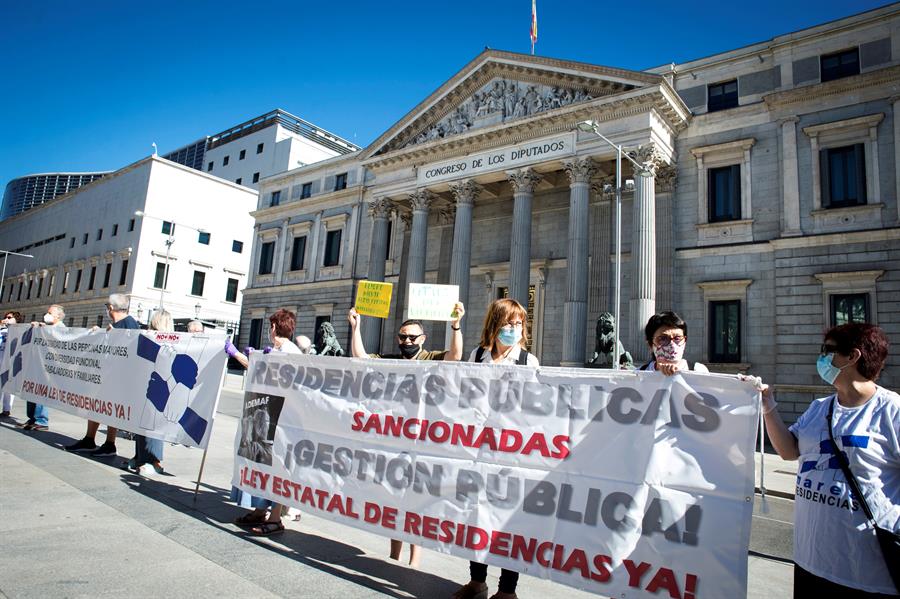 En el día en el que ese plazo concluye, y frente al Ministerio de Sanidad, los manifestantes han reivindicado que la máxima autoridad sanitaria del país “tome cartas en el asunto de las residencias a nivel nacional” y que marque unas directrices “muy claras y muy concretas” a las autonomías para evitar contagios de coronavirus en estos centros de mayores, grandes focos del virus durante la primera oleada de la pandemia.