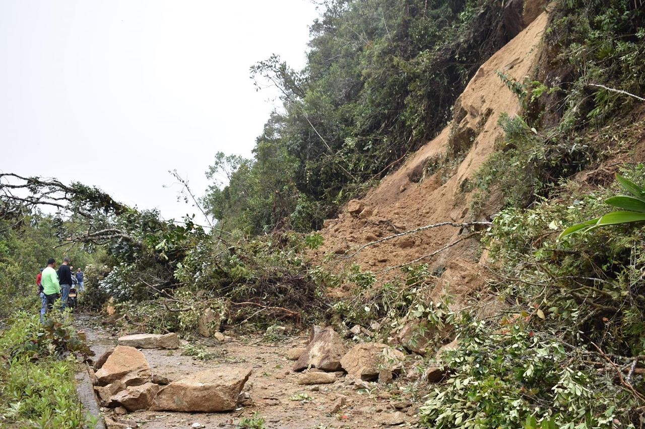 Habitantes del sector detallaron que “un movimiento de tierra de considerable proporción y con mucha piedra grande impide el paso vehicular en el sector el Páramo de Sonsón”.