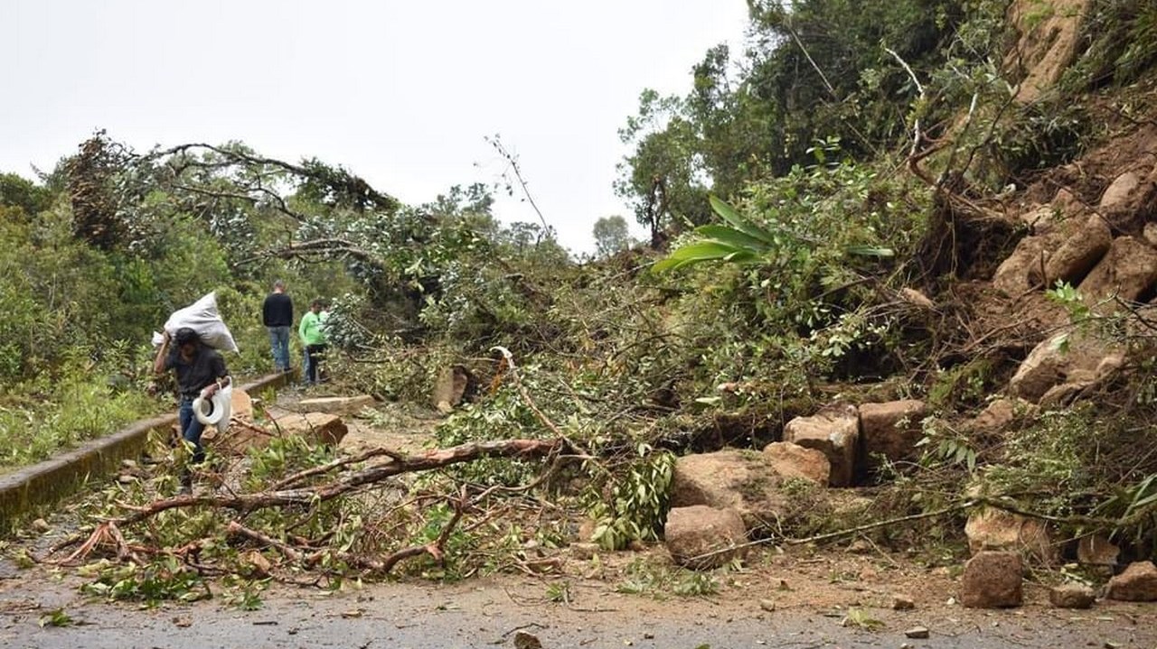 Habitantes del sector detallaron que “un movimiento de tierra de considerable proporción y con mucha piedra grande impide el paso vehicular en el sector el Páramo de Sonsón”.