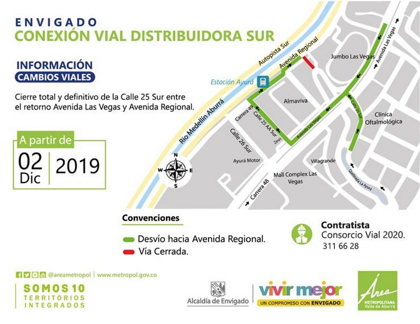 Según se pudo conocer, será la calle 25 sur, entre el retorno Avenida Las Vegas y Avenida Regional, la que será cerrada de manera permanente a partir del próximo lunes 2 de diciembre.