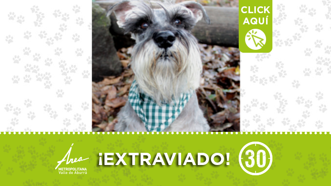 “Pillin” tiene 11 años y se perdió en la mañana del viernes 25 de abril por Laureles, cerca al Comando de Policía. Lleva en el cuello una cinta azul con un moño verde.