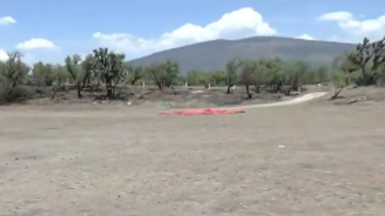Así quedó el globo siniestrado en la zona arqueológica de Teotihuacán este sábado 1 de abril