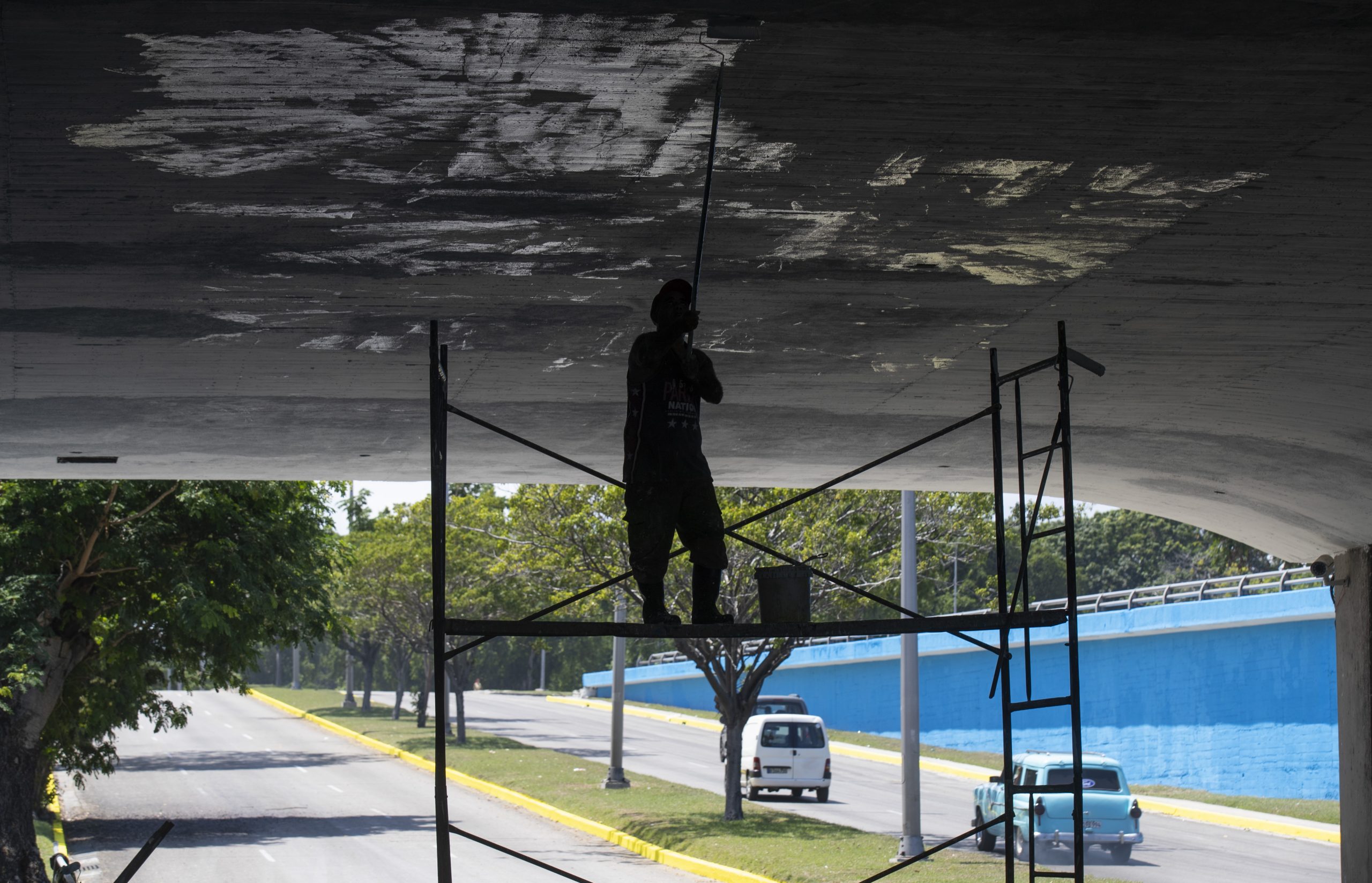 El operativo se puede apreciar hasta en el subsuelo. A días de la cumbre, en un túnel de la conocida Plaza de la Revolución, una docena de pintores retocaba con un azul intenso los costados del acceso mientras otro de mediana edad hacía lo mismo con un andamio para colorear el techo.