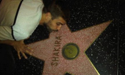 Piqué decidió visitar el Paseo de la Fama de Hollywood y se tomó esta fotografia besando la estrella de la colombiana, de la cual se hizo acreedora en noviembre del 2011, después la público en su cuenta de Twitter.