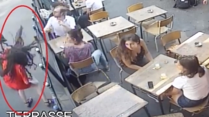 Momento en el que Marie Laguerre fue golpeada por responder a palabras y gestos obscenos de un hombre en la calle/Tomada de Facebook Marie Laguerre