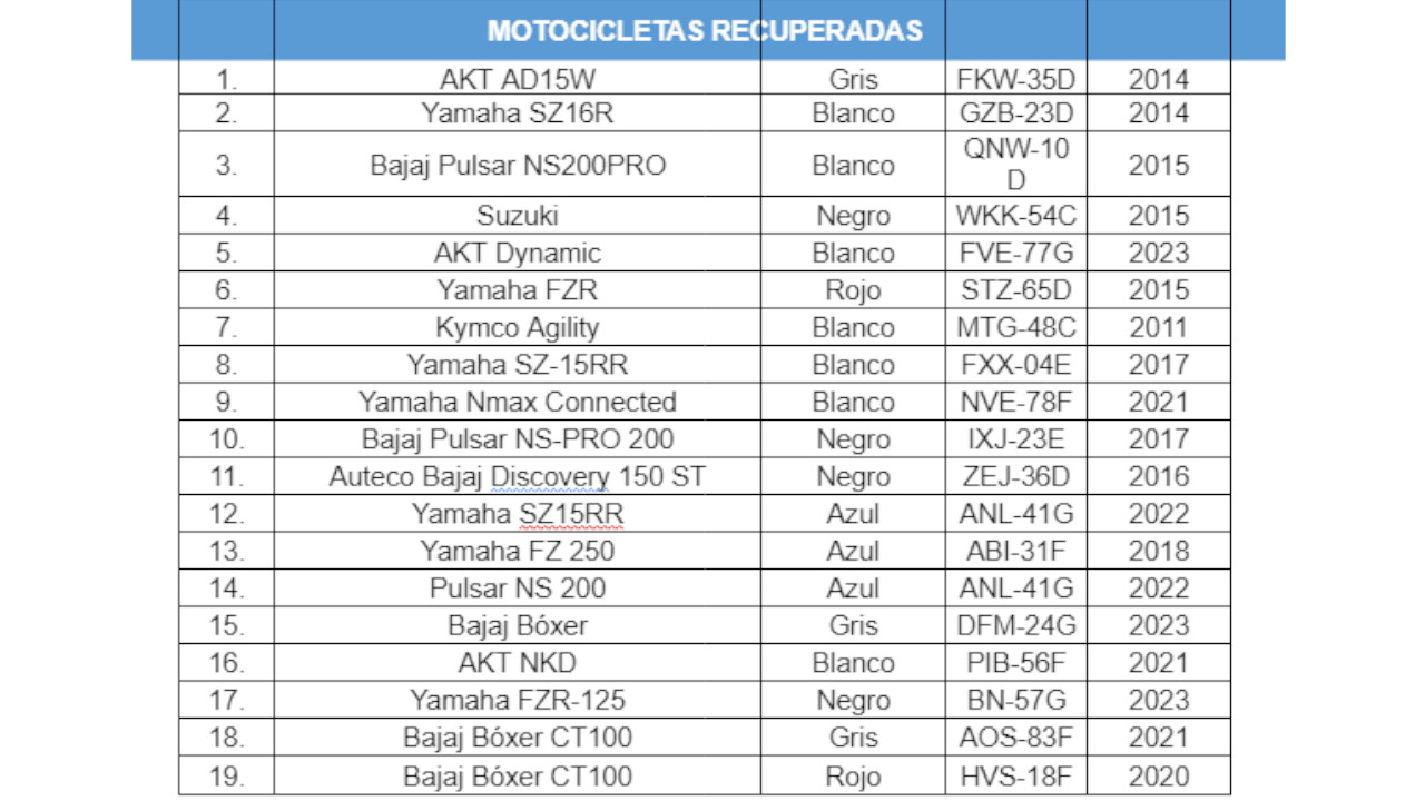 La Policía Metropolitana del Valle de Aburrá dio a conocer las placas de las motos y carros recuperados recientemente durante operativos.