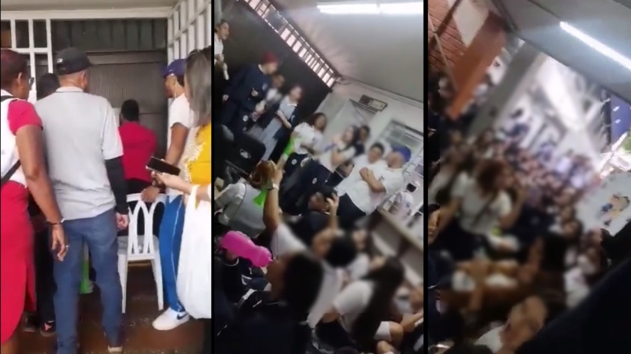 De acuerdo con los videos compartidos por persona que estuvieron haciendo un plantón en las afueras del colegio, los directivos no los dejaron ingresar hasta que llegaron funcionarios de la Alcaldía.