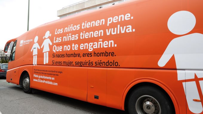 Polémico autobús con lemas contra transexualidad infantil se pasea por Madrid