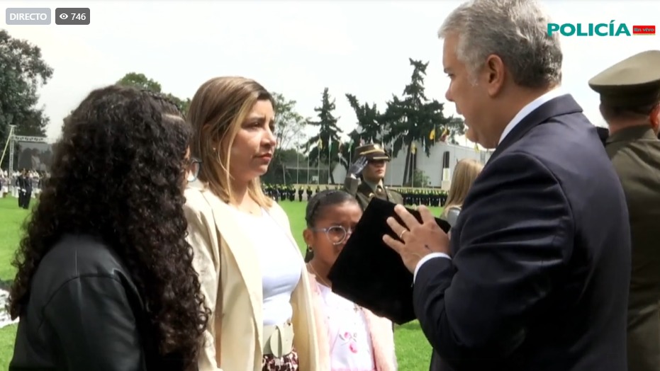 Él murió siendo Mayor y fue ascendido a Teniente Coronel. De las manos del presidente Iván Duque, su familia recibió la placa del nombramiento y las condolencias por el fallecimiento de su ser querido en una conmovedora ceremonia realizada en el campo de ceremonias ‘Cinco de noviembre’ de la Escuela de Cadetes de Policía ‘General Francisco de Paula Santander’,