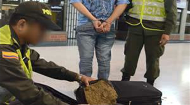 Minuto30.com .- El procedimiento policial fue adelantado en la terminal de transportes del norte, cuando uniformados hallaron en dos maletas, 86 paquetes con marihuana con un peso total de 50 kilogramos transportadas por un sujeto de 21 años.