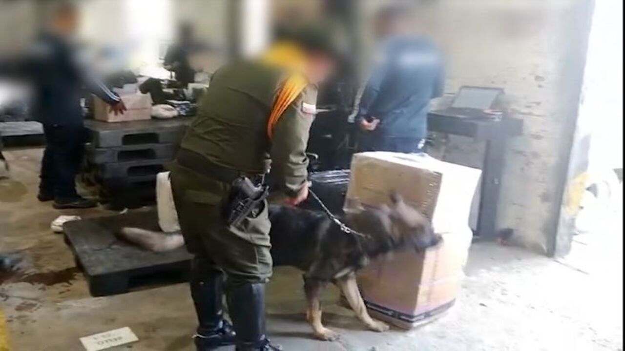En otro operativo, el canino Omero detectó tres cajas en un centro de acopio de paquetes en la comuna 16 de Belén.