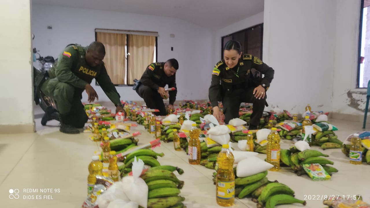 La actividad fue liderada por el subintendente Deivis Jesús Mulasco Padilla, gestor de Participación Ciudadana, con la ayuda de los Integrantes de la Estación de Policía Moñitos, quienes entregaron uno a uno los productos de la canasta familiar.