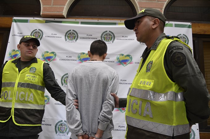 El segundo procedimiento se desarrolló en la carrera 64 con calle 67b, vía pública del barrio caribe, noroccidente de la ciudad, cuando unidades policiales luego actividades de investigación y seguimiento dieron captura a un hombre de 21 años de edad, con el alias de “jarito”, quien al parecer seria el causante de la muerte del auxiliar regular de Policía Cristian David Hernández Londoño, el pasado 15 de mayo del presente año, quien al momento de este trágico hecho se encontraba de licencia.