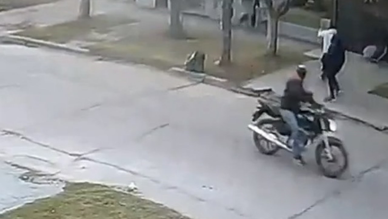 De acuerdo con el video, los dos delincuentes aparecieron en una moto, mientras que uno de ellos se bajó para abordar a una mujer de 68 años que caminaba por la vereda junto a sus dos nietas, pero no se percataron que cerca había un policía de civil.