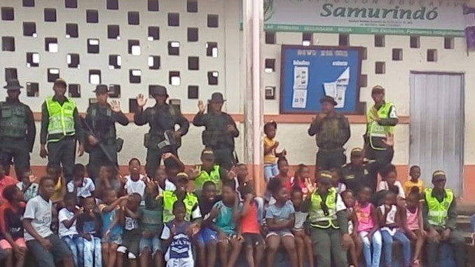 Uniformados adscritos al Departamento de Policía Chocó visitaron el corregimiento de Samurindó donde realizaron diferentes actividades comunitarias con el fin de contribuir a consolidar la seguridad y sana convivencia.