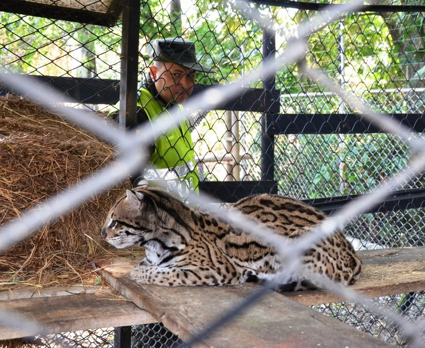 En una finca ubicada en la vereda Llano de Aguirre de San Jerónimo, en el Occidente antioqueño, unidades de la Policía Antioquia realizaron un allanamiento que permitió recuperar un tigrillo de nombre científico Felis Pardalis, dos Guacamayas Ara Ararauna y una Guagua, cuyo nombre científico es Cuniculus Paca.