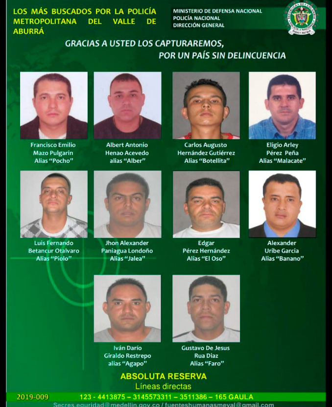Según el General Eliécer Camacho, comandante de la Meval, los sujetos pertenecen a las bandas delincuenciales ‘Pachelly’, ‘Los Mesa’ y ‘Niquia Camacol’, quienes actualmente se disputan el territorio al norte del Valle de Aburrá.