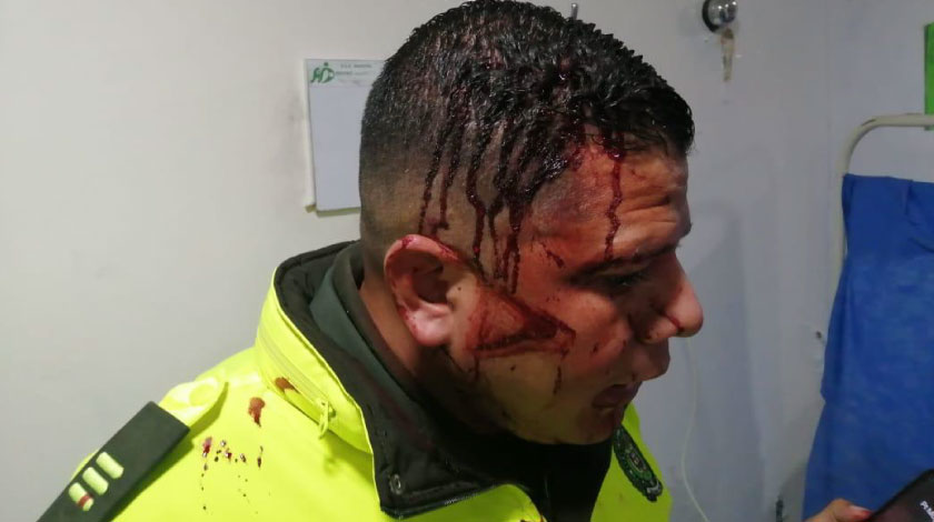 Al sitio llegaron dos policías, que también fueron agredidos por estas personas, pegándoles puños, y uno de ellos le quita el ‘bolillo’ a otro uniformado y comienza a atacarlos con este, causando heridas en la cabeza de los dos uniformados.