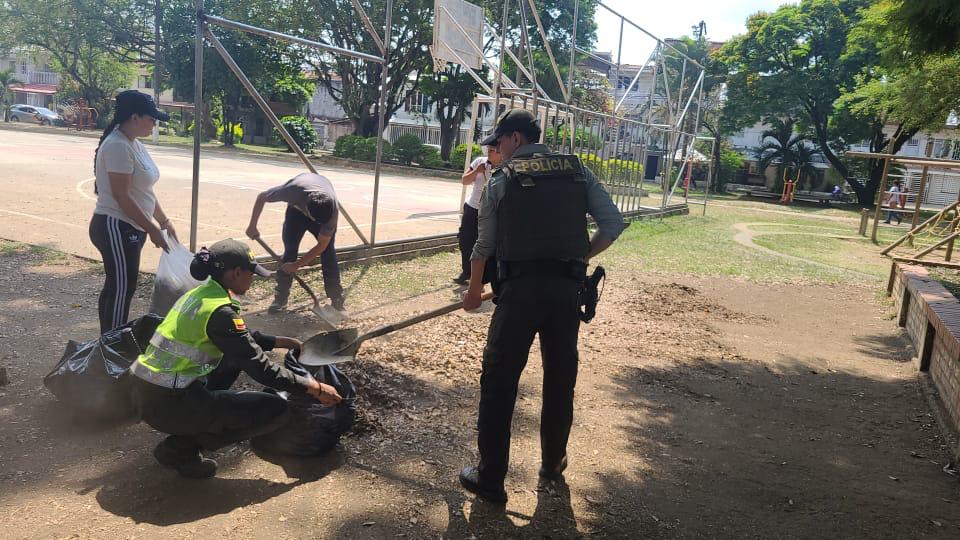 Policías lideraron la recuperación del parque Ciudad Sur, un espacio destinado a la recreación y sano esparcimiento de las familias en el municipio de Jamundí, Valle del Cauca.