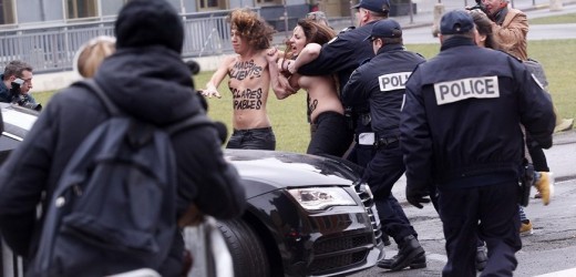 A su llegada al tribunal por la mañana, tres activistas de Femen a pecho descubierto y con inscripciones en el cuerpo, se abalanzaron sobre el coche del ex director gerente del FMI lanzando gritos de condena contra los clientes de prostitutas y los proxenetas. EFE