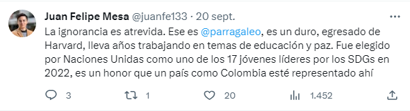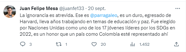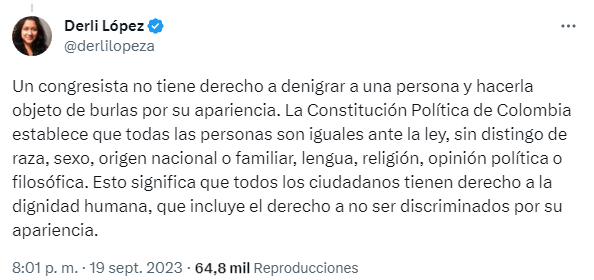 Por medio de su tuit el congresista se refirió de manera despectiva a la apariencia física que tiene Leonardo Párraga, uno de los representantes del país en el foro de las Naciones Unidas, palabras que han sido muy rechazadas en redes.