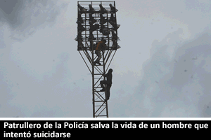 El Patrullero Juan Pablo Cerón subió a la torre para persuadir al hombre que intentaba quitarse la vida por problemas personales y económicos.