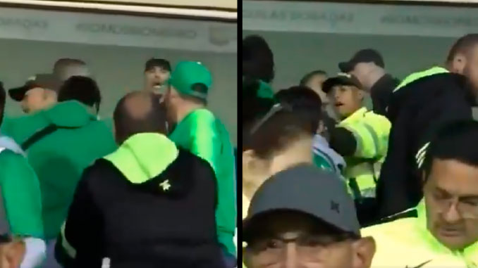 Aguilas Doradas De Rionegro discutiendo con algunos hinchas del Club Atlético Nacional. pic.twitter.com/11ApexyqTq— Juan Pablo Rúa Jiménez (@JuanPabloRuaJim) 22 de abril de 2019