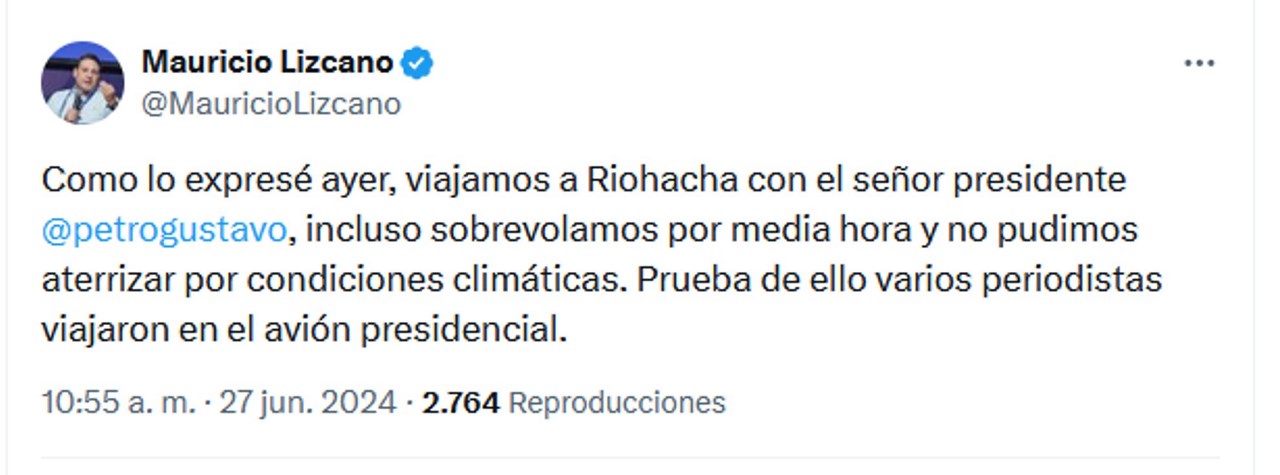 Minuto30.com .- Mauricio Lizcano, Ministro de tecnología, información y telecomunicaciones de Colombia informó a través de X la razón por la que no llegaron el miércoles 27 de junio, en compañía del Presidente Petro, a La Guajira.