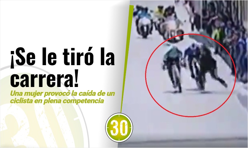 Faltando pocos metros ocurrió un hecho insólito. Pese a que el público alentaba a los ciclistas, y que todo estaba señalizado, una señora cometió una imprudencia.