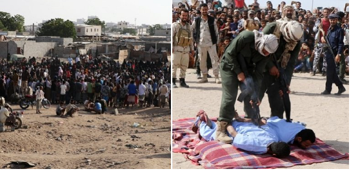 La ejecución se realizó en una plaza pública de la ciudad portuaria de Adén, donde cientos de personas se reunieron para ver a los dos hombres ser asesinados a tiros mientras que la multitud gritaba enardecida.