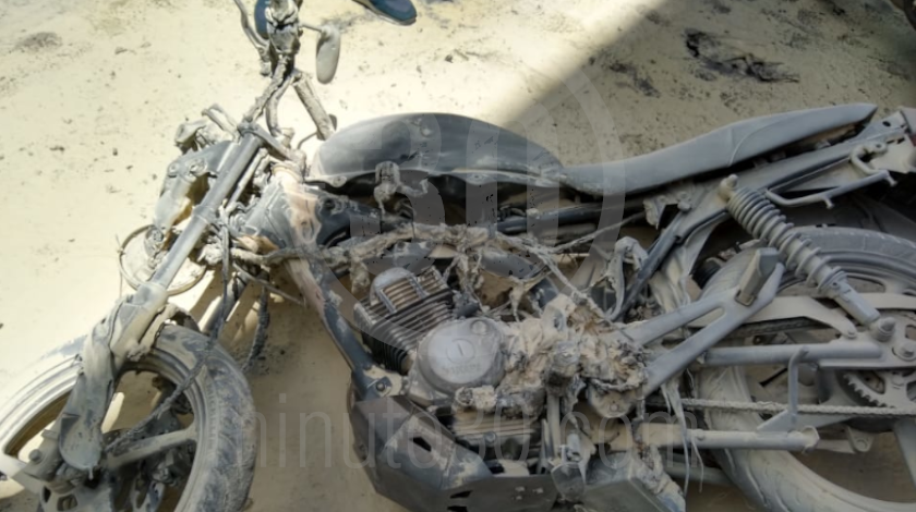 Por su parte, la comunidad enardecida quemó la moto en la viajaban los sujetos.