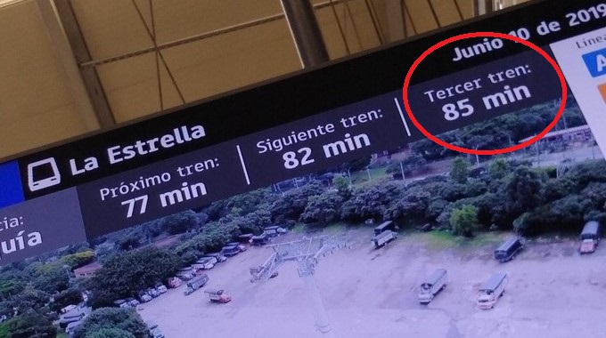A comienzos de mayo el Metro reportó un problema de software que se reflejaba en las pantallas donde aparecía que el siguiente tren se demoraría más de 100 minutos, tema que fue resuelto y organizado por el sistema de transporte masivo del Valle de Aburrá.