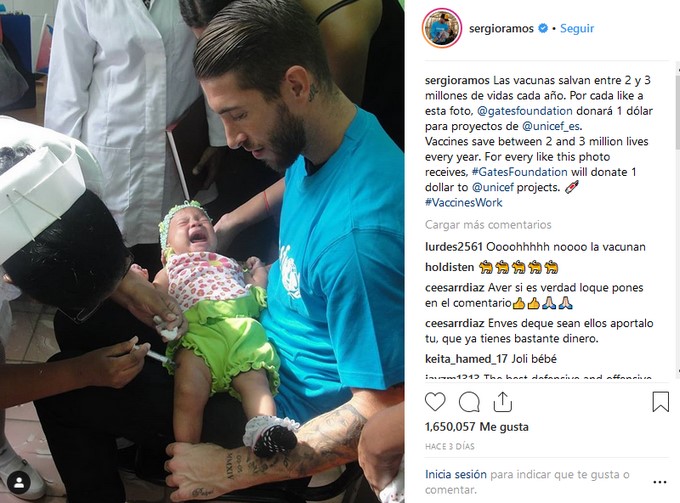 Minuto30.com .- El futbolista Sergio Ramos ha logrado una hazaña al recaudar más de un millón de dólares en menos de 12 horas; El dinero será invertido en campañas de vacunación para países en desarrollo. Y es que la campaña consistía en por cada like que ganaba una imagen específica colgada por Ramos en su cuenta de Instagram, la asociación Gates Foundation entregaría un dolar a Unicef, para adelantar campañas de vacunación.
