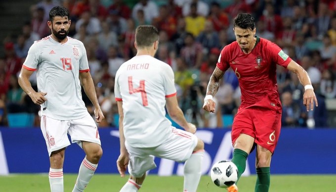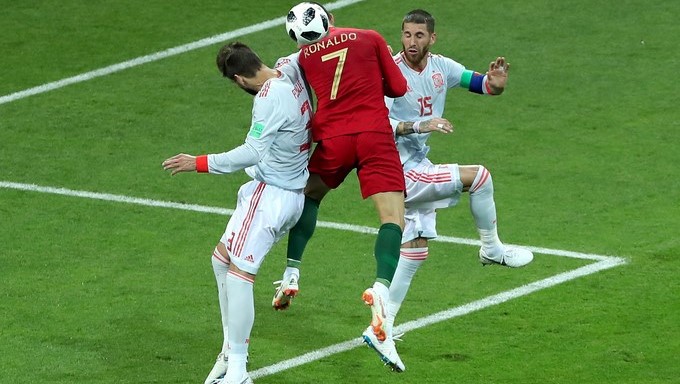 Cristiano se convirtió en el cuarto jugador en marcar en cuatro Mundiales. Lo hizo nada más arrancar el duelo, a los 4 minutos, tras provocar un penalti de Nacho en una primera parte que cerró con un disparo seco que sorprendió a De Gea por colocar mal el cuerpo. España había reaccionado con un gran gol de Diego Costa a los 24 minutos.