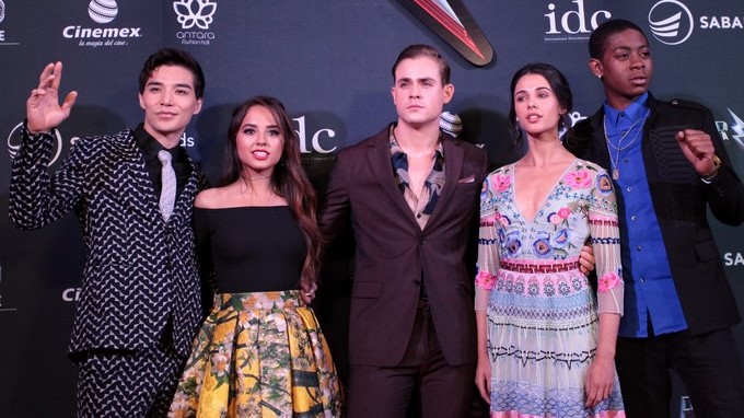 .- Los actores Ludi Lin (i), Becky G (2-i), Dacre Montgomery (c), Naomi Scott (2-d) y RJ Cyler (d) posan durante el estreno de la película Power Rangers hoy, jueves 16 de marzo de 2017, en Ciudad de México (México). EFE/Sáshenka Gutiérrez