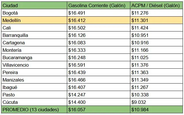 Para el caso de Medellín, el galón de gasolina se cotiza desde hoy en $16.412, mientras que el ACPM subió hasta los $11.301.