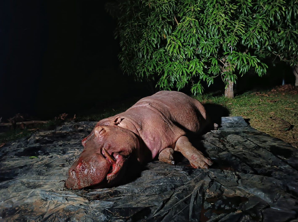 Dato: Cornare reveló que en la evaluación del cadáver se pudo determinar que se trató de un macho adulto esterilizado, es decir que fue uno de los primeros hipopótamos en los que se realizó este procedimiento quirúrgico. Hasta el momento, el equipo técnico de Cornare y en apoyo con otras entidades, se han realizado 13 esterilizaciones quirúrgicas, aplicación de Gonacon a 38 individuos.