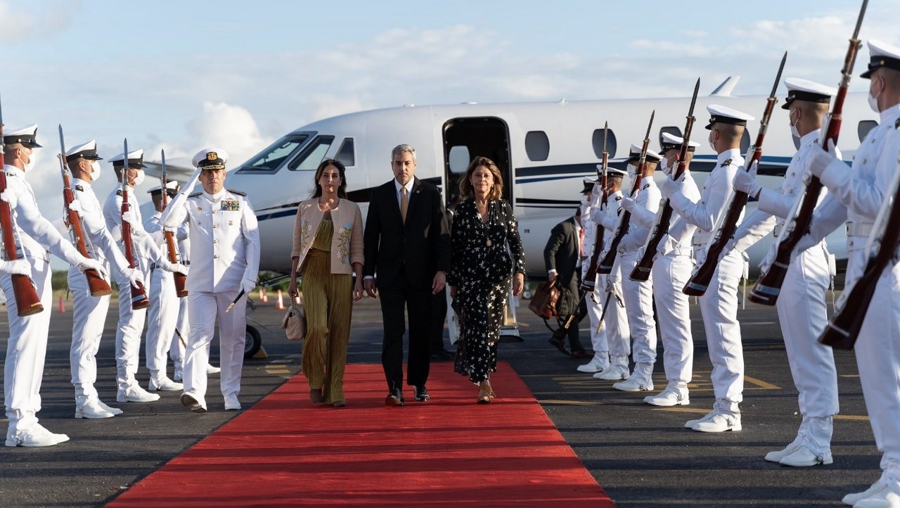 El Mandatario paraguayo llegó en compañía de la Primera Dama, Silvana López Moreira; la Ministra Secretaria Ejecutiva por los Derechos Humanos de las Personas con Discapacidad, Mariela Soledad Ramírez Burgos; el Viceministro de Relaciones Económicas e Integración de la Cancillería, Raúl Cano Ricciardi; la Embajadora del Paraguay en Colombia, Sophia López Garelli; y una delegación de congresistas.
